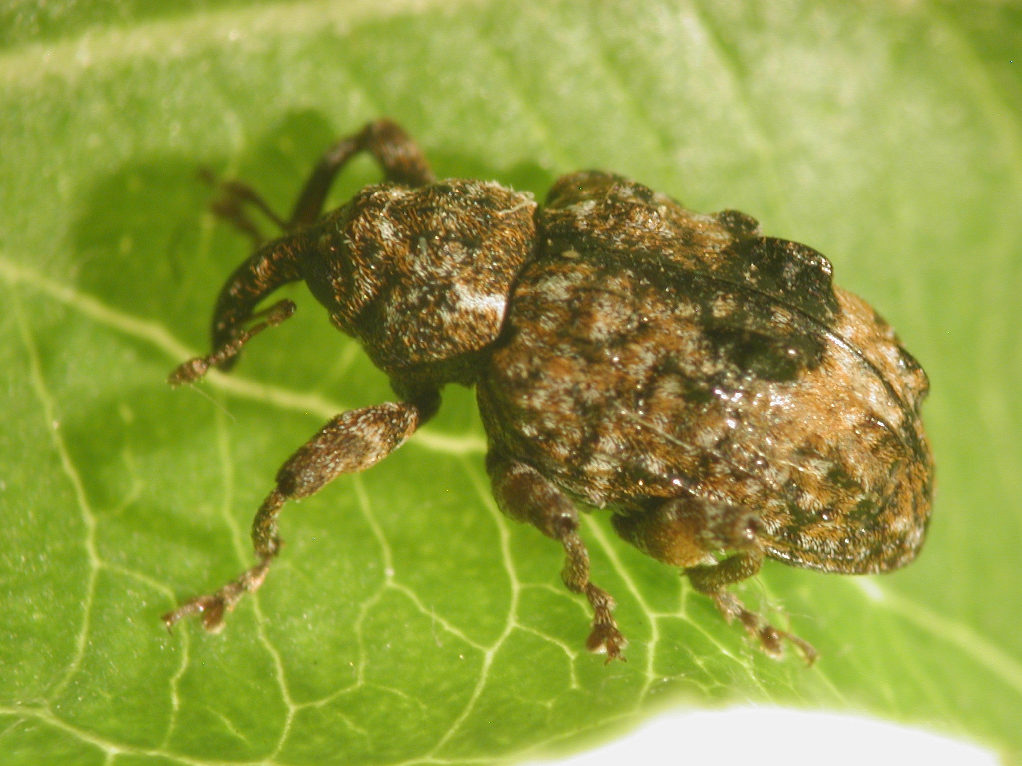 There is one major peach insect that everyone wants to get rid of, the Plum Curculio. This small worm or grub feeds inside the peach mostly near the seed and can cause anyone who has found one a real heartache. This worm or larva is laid by an adult snout beetle, similar in looks to the oak, pecan, or cotton weevil. This adult overwinters in the soil at the base of the fruit tree and comes out early with the plums and moves to peaches as plums mature early. The adult female will chew a small hole in the fruit skin and lay eggs just under the surface. The eggs hatch into small larva that feed in the fruit for 2 to 4 weeks and of course this is what causes the problems.