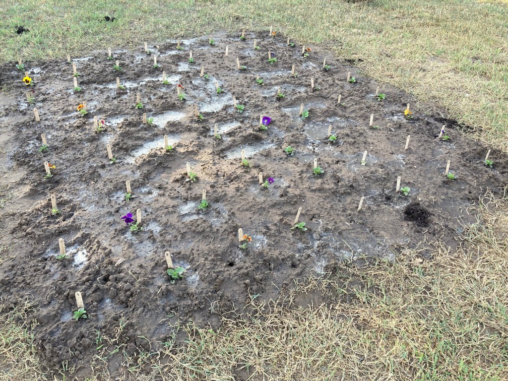 The pansies were grown in the greenhouse for a couple of weeks after treatment and then transplanted in a replicated, randomized trial in the ground.