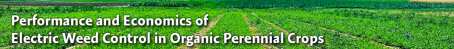 Weed management is a significant problem in organic orchard and berry production, due to limitations on crop rotation and tillage between crops. Organic weed control requires frequent soil disturbance, hand labor, high rates of organic herbicides, or the application of large amounts of organic or synthetic mulches. These practices can be barriers to economic, soil health and sustainability goals. In this project, a team of researchers in three states will consider the performance, safety, and economic and environmental sustainability of electric weed control (EWC) in perennial crops. To read more just click this link and see video, updates and pictures.